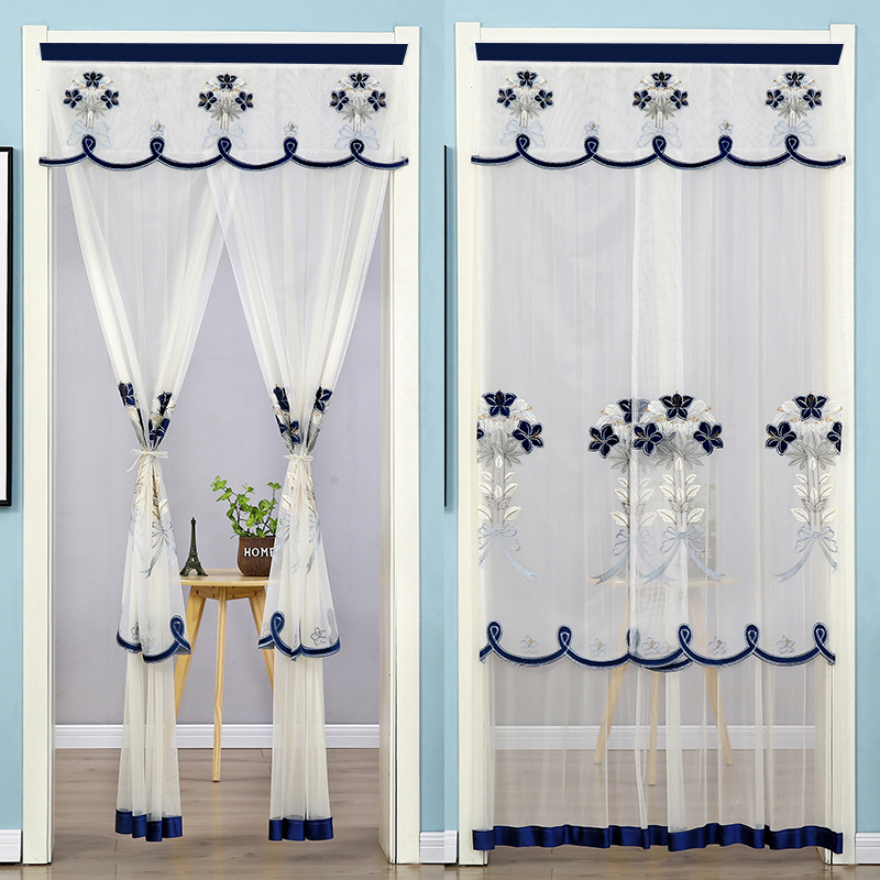 Air-conditioning door curtain yarn door curtain anti-mosquito partition curtain free punching bathroom home bedroom living room fabric cover half curtain