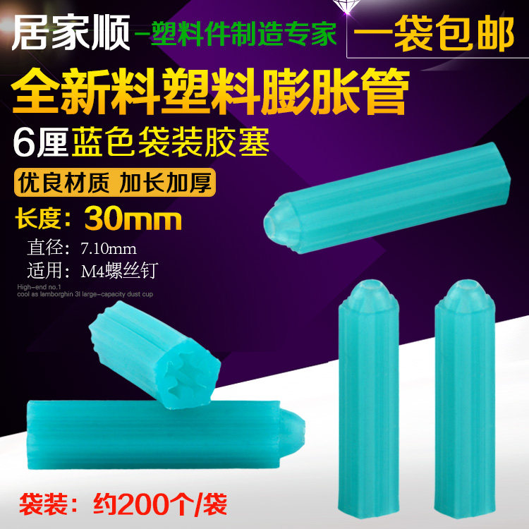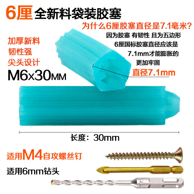 New material plastic fluffy pipe 6 cm thickened lengthened M6 Lieven body rubber stopper 6mm blue pointed gummed rubber grain wall plug