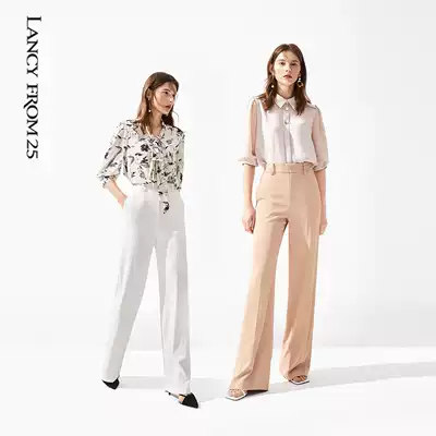 Lang Zi pants women's 2021 summer fashion new product slim white high waist loose long leg mop suit pants