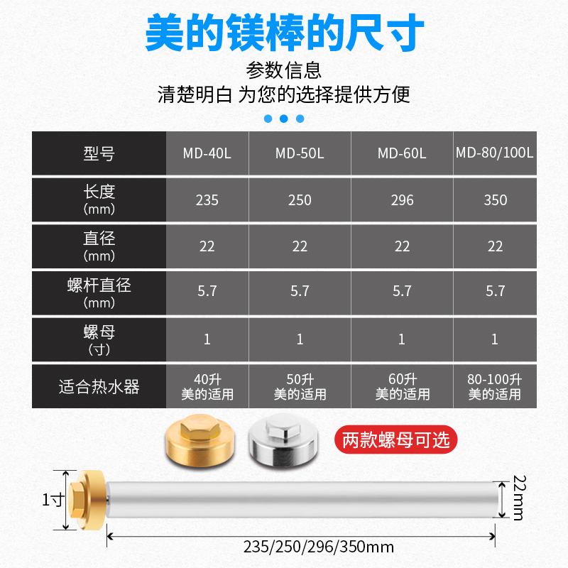 Midea electric water heater universal magnesium rod 40 50 60 80 100L liter sewage scale sacrifice anode rod accessories