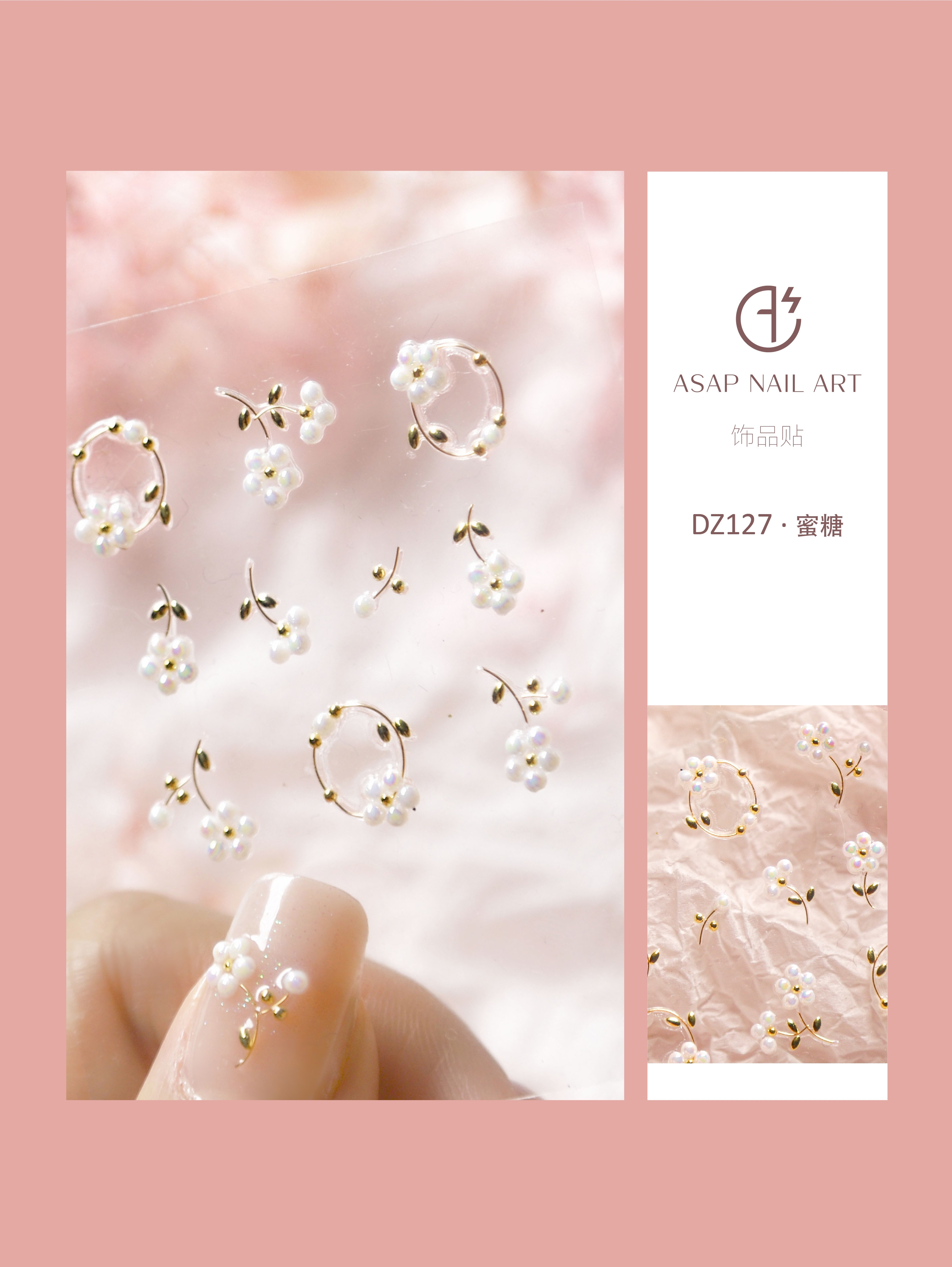 Jewelry stickers (honey)Japanese three-dimensional pearl nail stickers 3d decorative adhesive nail stickers Diamond decals