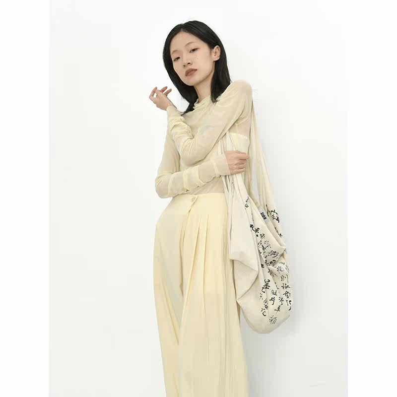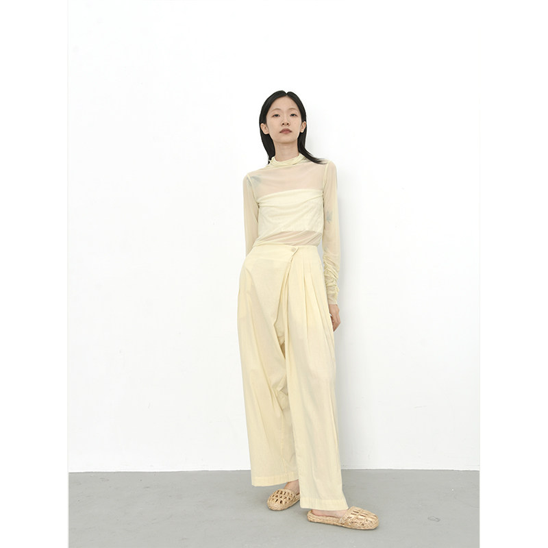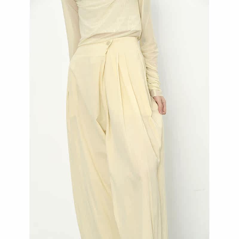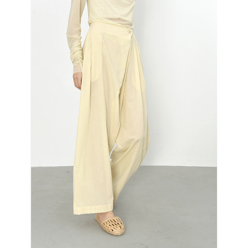 2021 Autumn section Skew Door Broadlegged Pants Full Cotton Art Loose Casual Slouched Slim Woman Type Diagonal Button Design Long Pants
