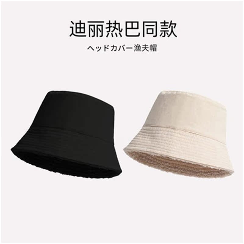 Japan Reba same style fisherman hat women's white lamb velvet double-sided bucket autumn and winter plush warm hat