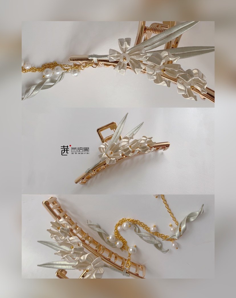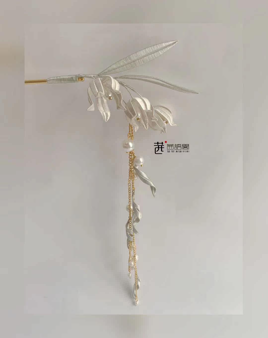 Original design starlight lily of the valley pearl pendant hairpin grip wrapping flower can be matched with Chinese clothing Chinese element cheongsam French dress