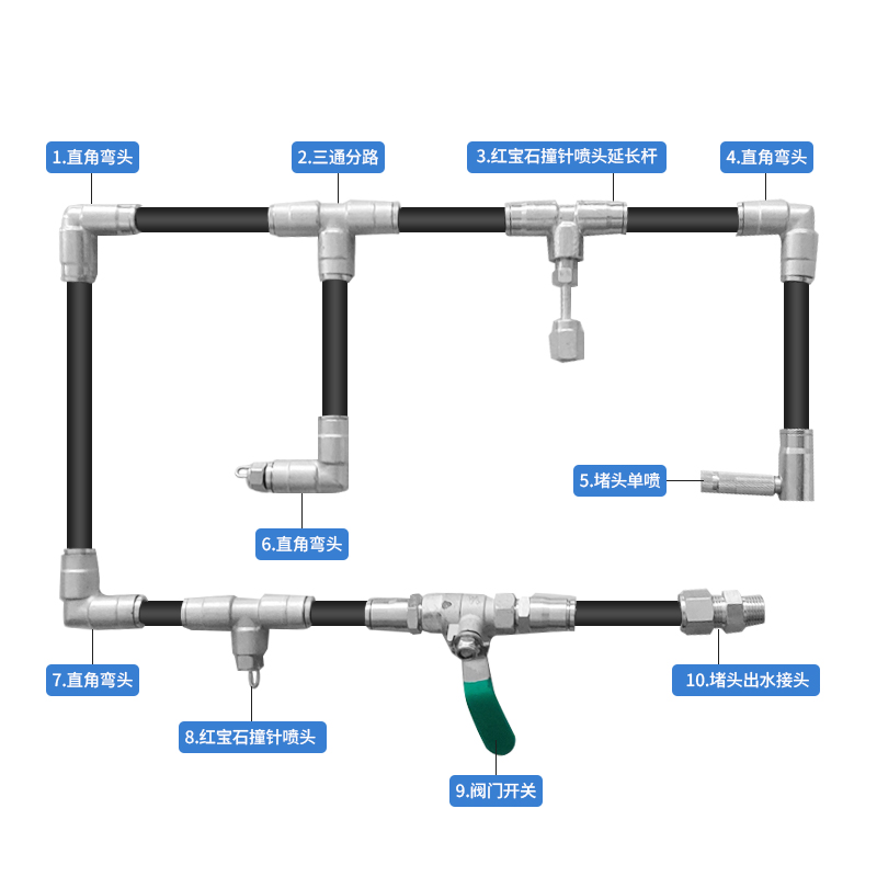 Ruby nozzle ruby base ordinary nozzle (dust and cooling) three-way stainless steel pipe PA pipe