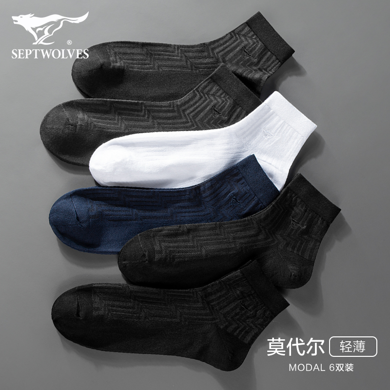 Septwolves socks men's modal ice mesh breathable mid-tube socks summer thin solid color business men's stockings