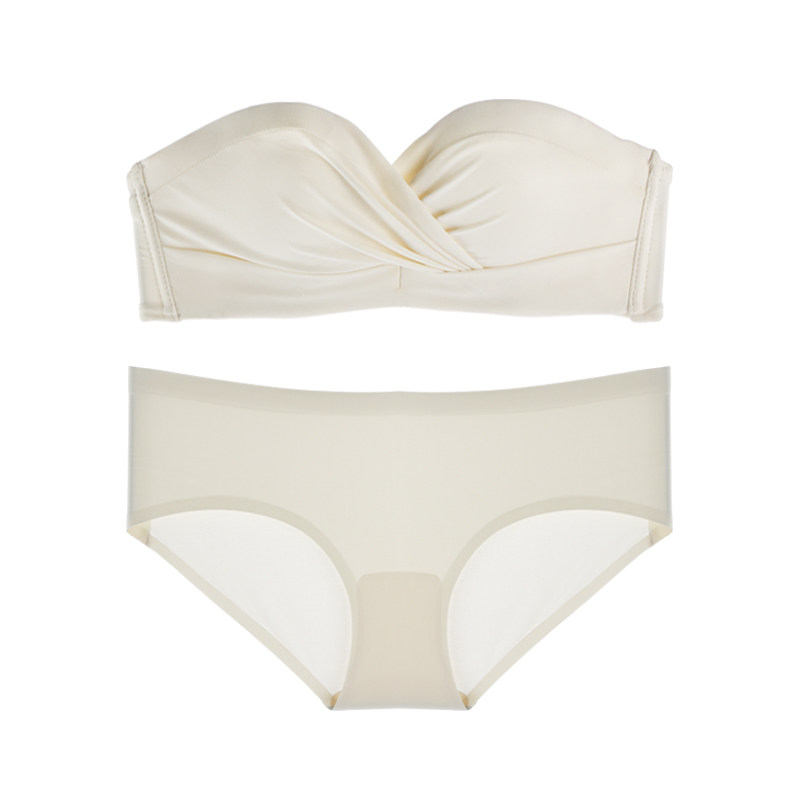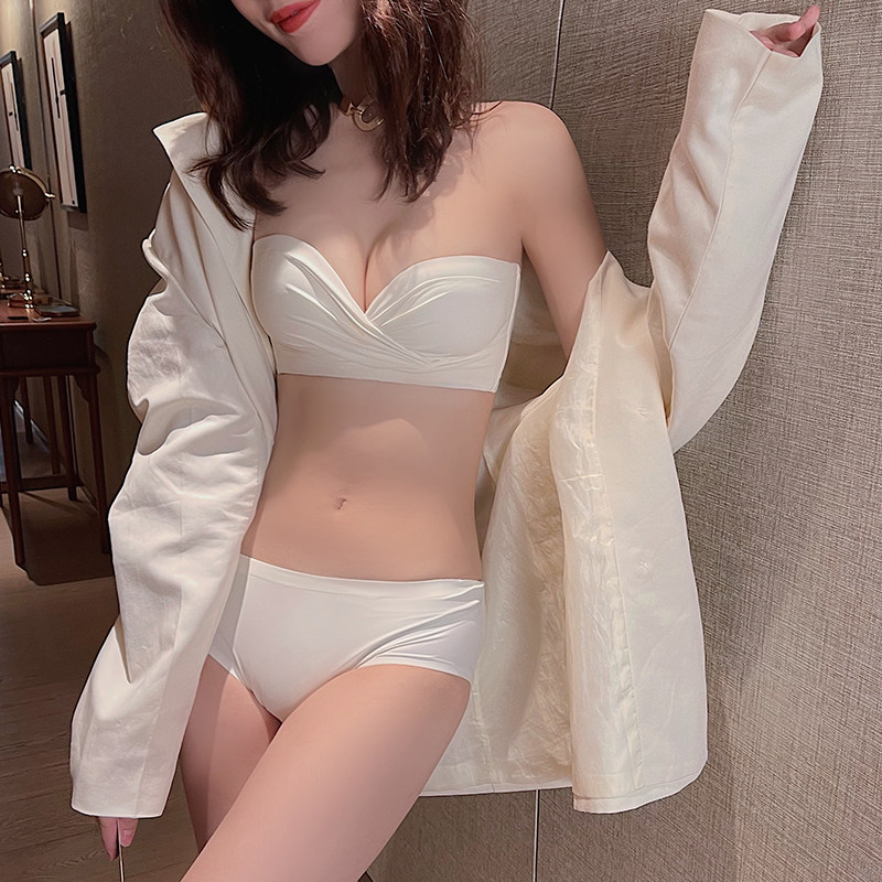 Strapless underwear women's small chest gathered non-slip invisible ladies sexy rimless summer white bra cover suit