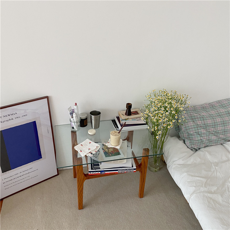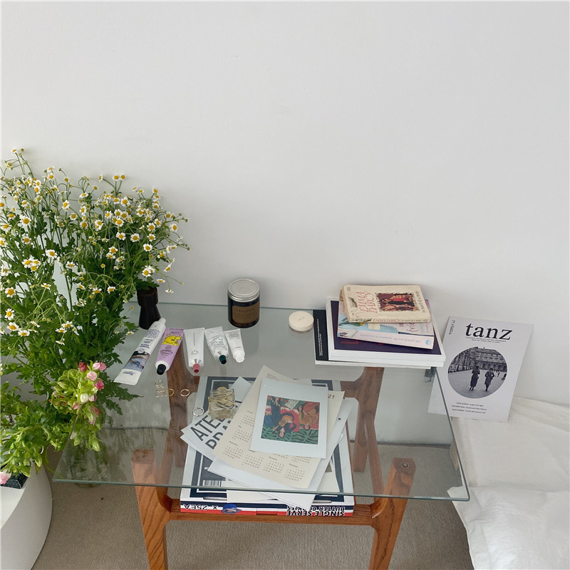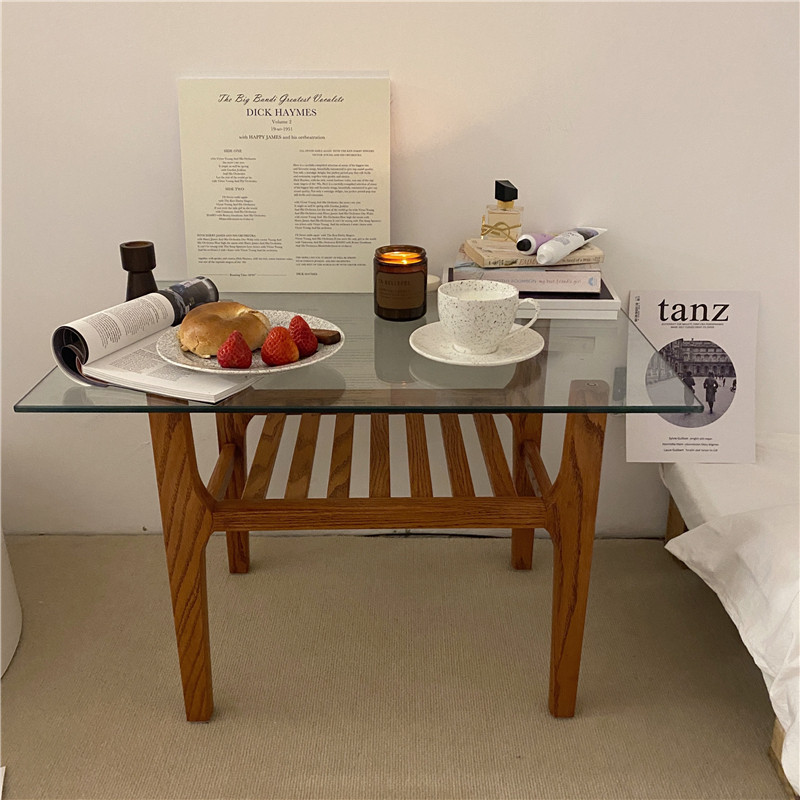Po-Homemade Medieval Retro ins Red Oak Log Solid Wood Glass Tea Table Side Home Decoration Coffee Shop