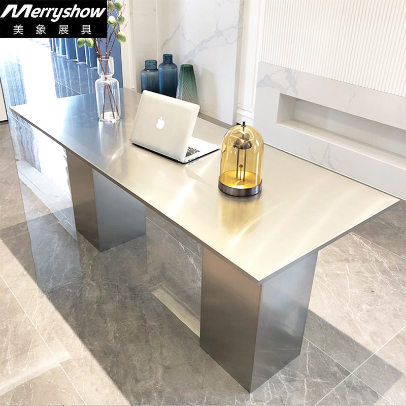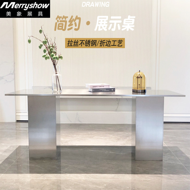 Beauty Elephant Clothing Store Middle Island Display Terrace Men's Clothing Shop Wire Drawing Stainless Steel Display Table Commercial Booth Negotiation Table Tea Table
