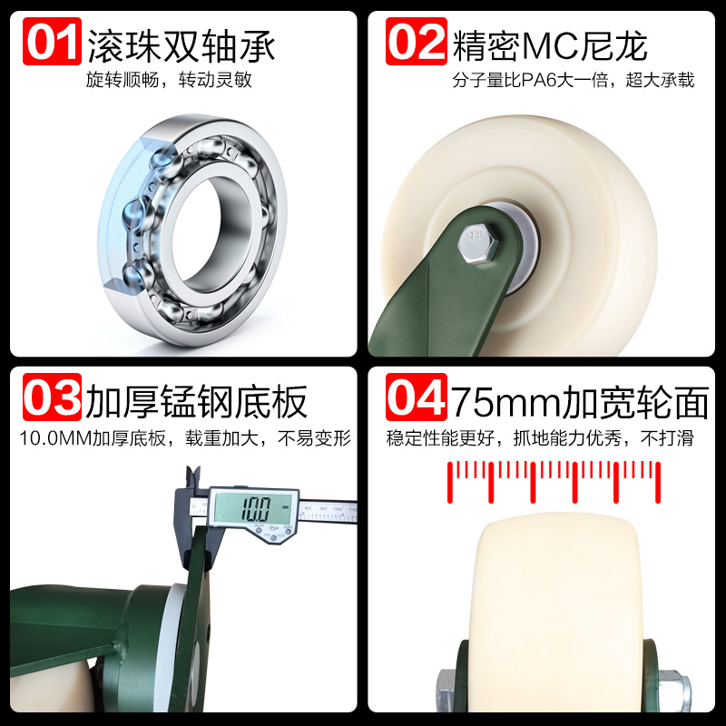 Ultra-heavy universal wheel industrial 6 inch 8 inch 10 inch 12 inch wheel aggravated carrier nylon anti-shock bearing castors