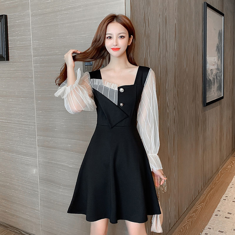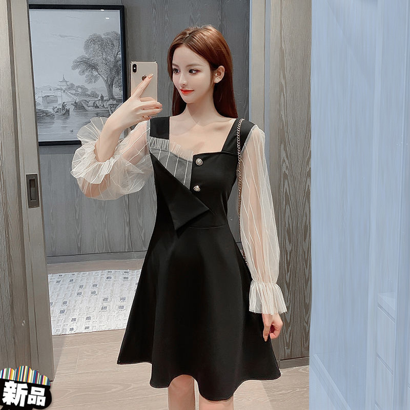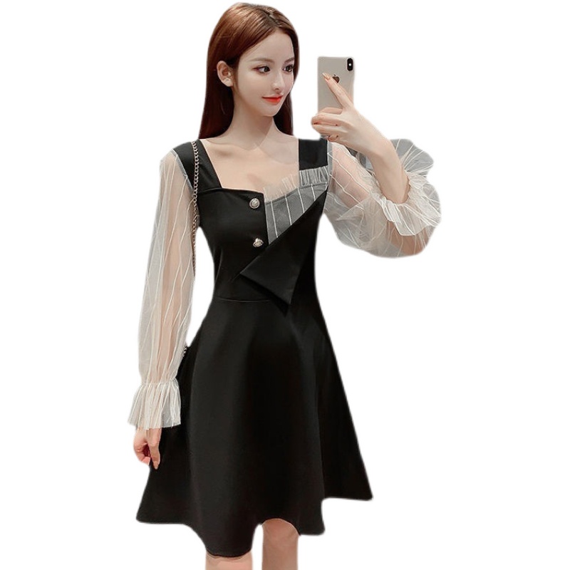 21 spring and summer French style retro temperament thin mesh splicing Hepburn little black dress CD fake mother-in-law cross-dressing plus size dress