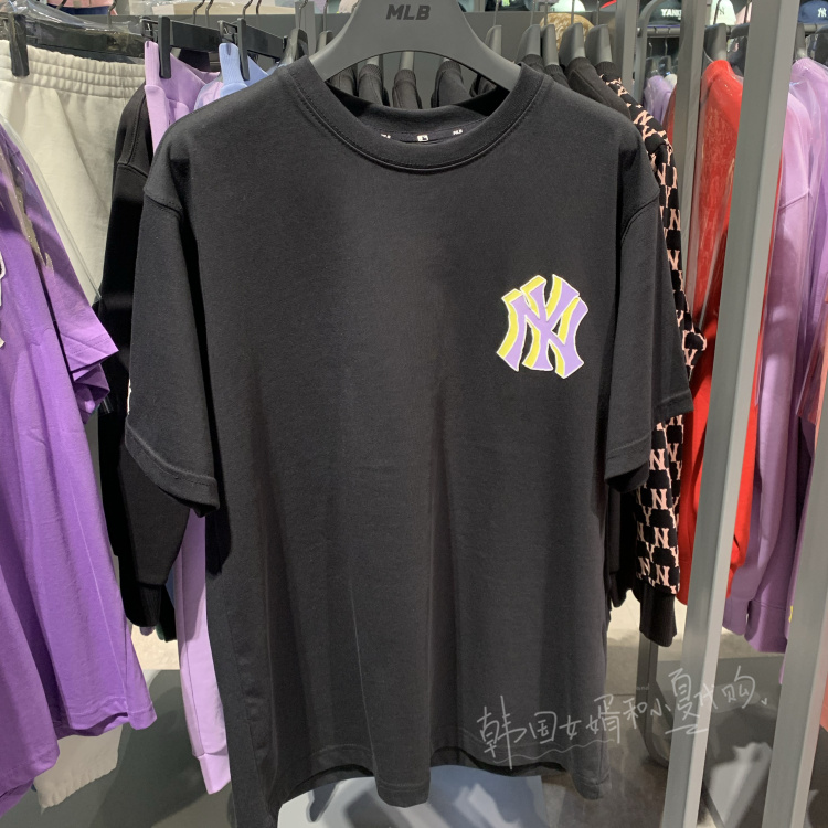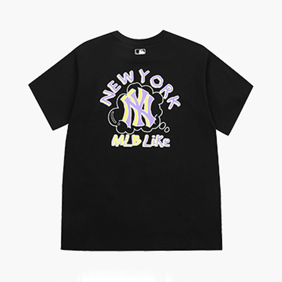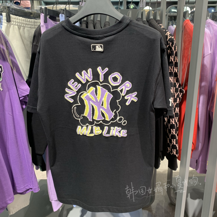 Korea MLB Tide Cards NEW YORK Graffiti Popcorn NY Lovers Loose Short Half Sleeve Men and Men Summer