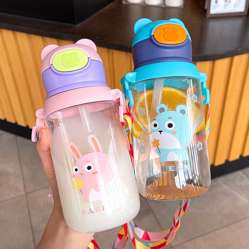 Children's water cup Korean version of the cartoon cute pupil cup portable leak-proof water bottle creative straw cup children