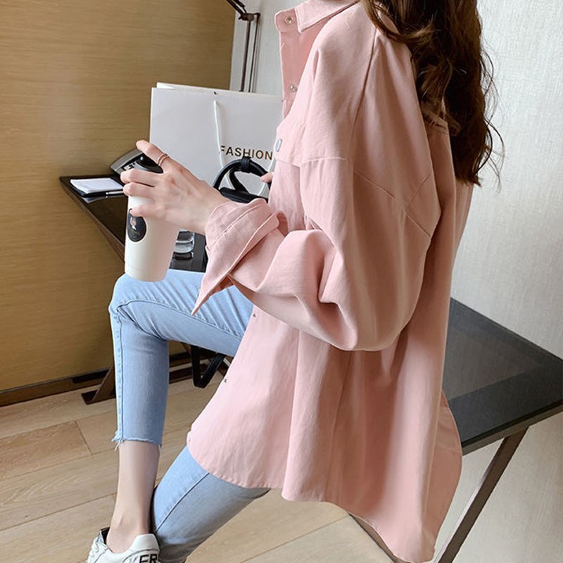 White shirt women's 2022 spring new fashion design sense niche top loose long-sleeved denim shirt jacket trendy