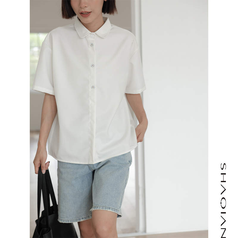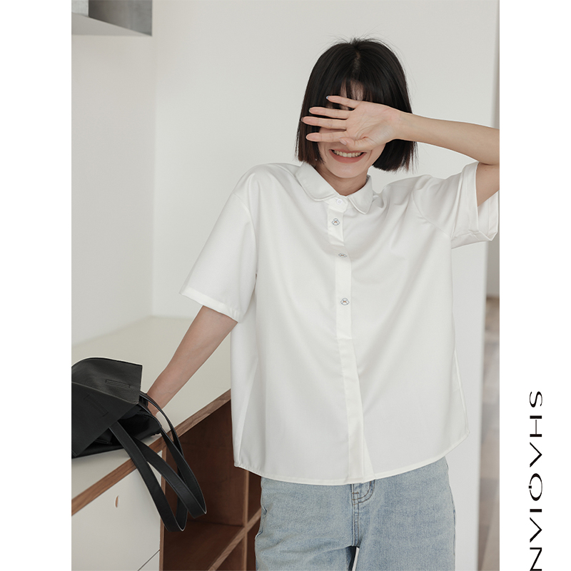 2022 summer new Korean version white shirt women's short-sleeved loose and thin all-match cartoon penguin button impervious shirt