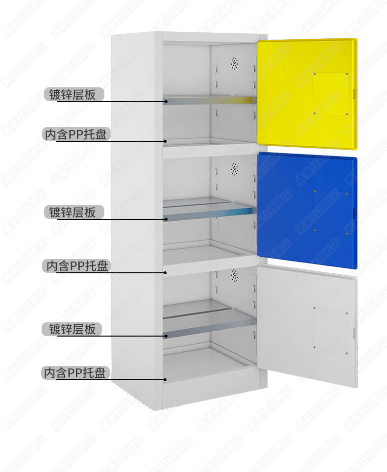 Three-in-one explosion-proof cabinet 12 gallons yellow 12 gallons blue 12 gallons drug cabinet pp tray