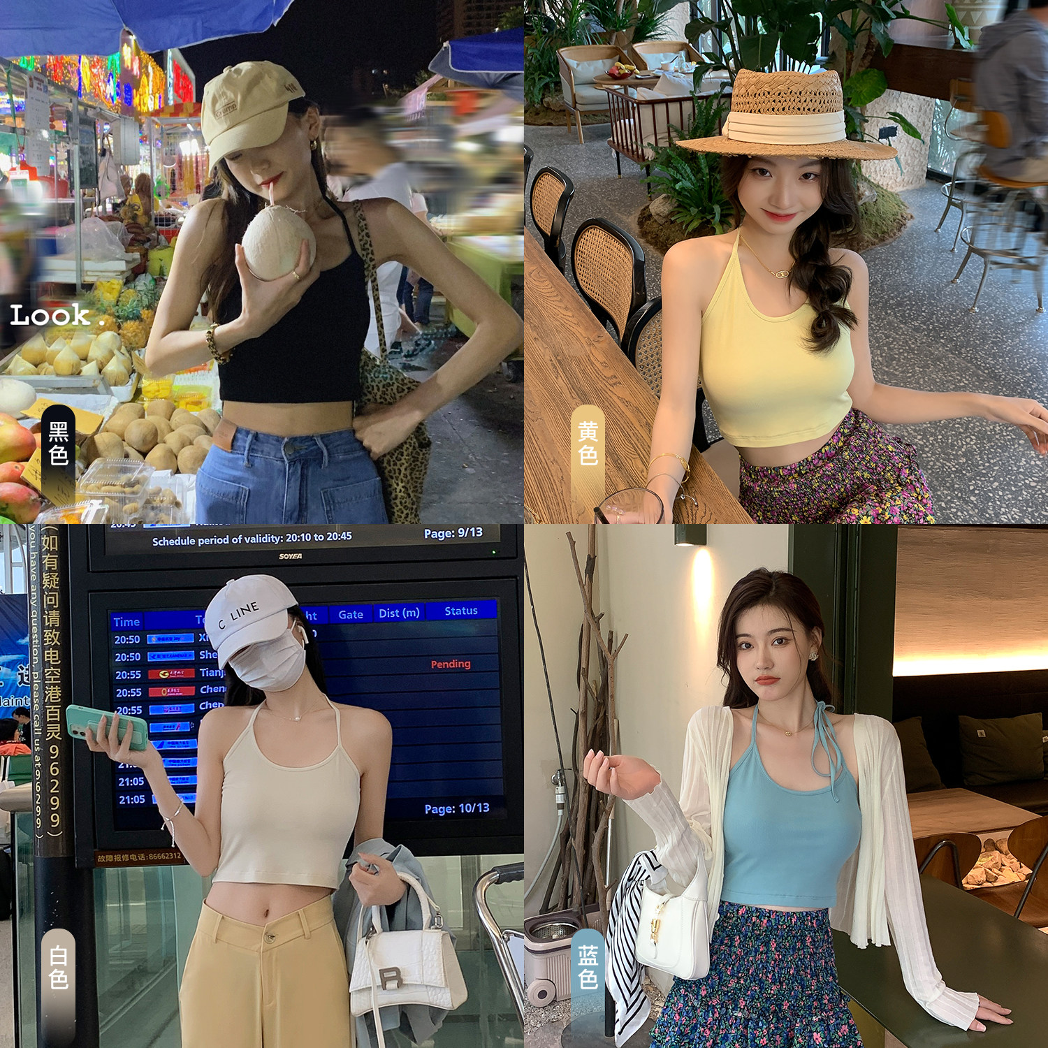 (Two Lemon Summer Sweetheart) hanging neck with effortless slim camisole vest women's short