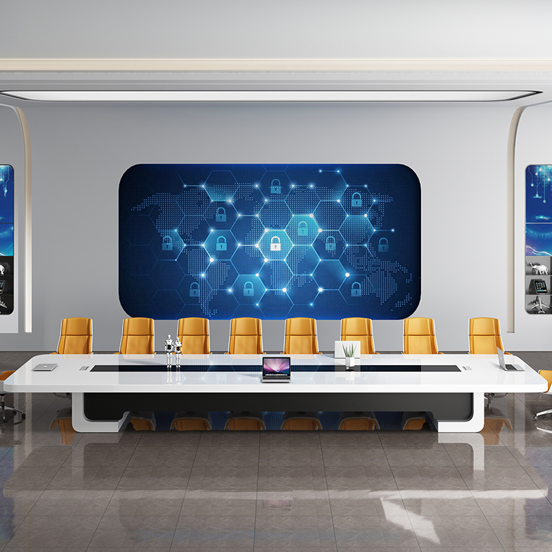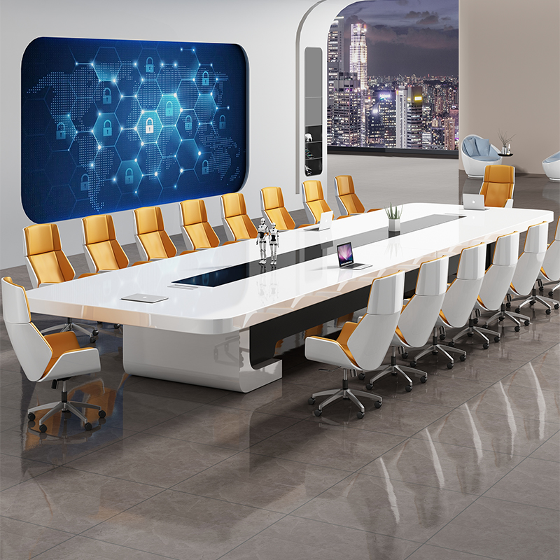 Xian Min White Desk Baking Paint Large Conference Table Long Table Simple Modern Negotiation Table Conference Room Table and Chair Combination