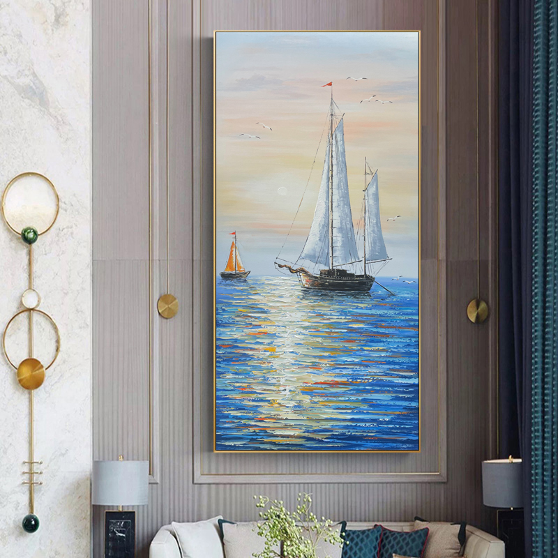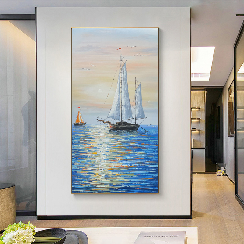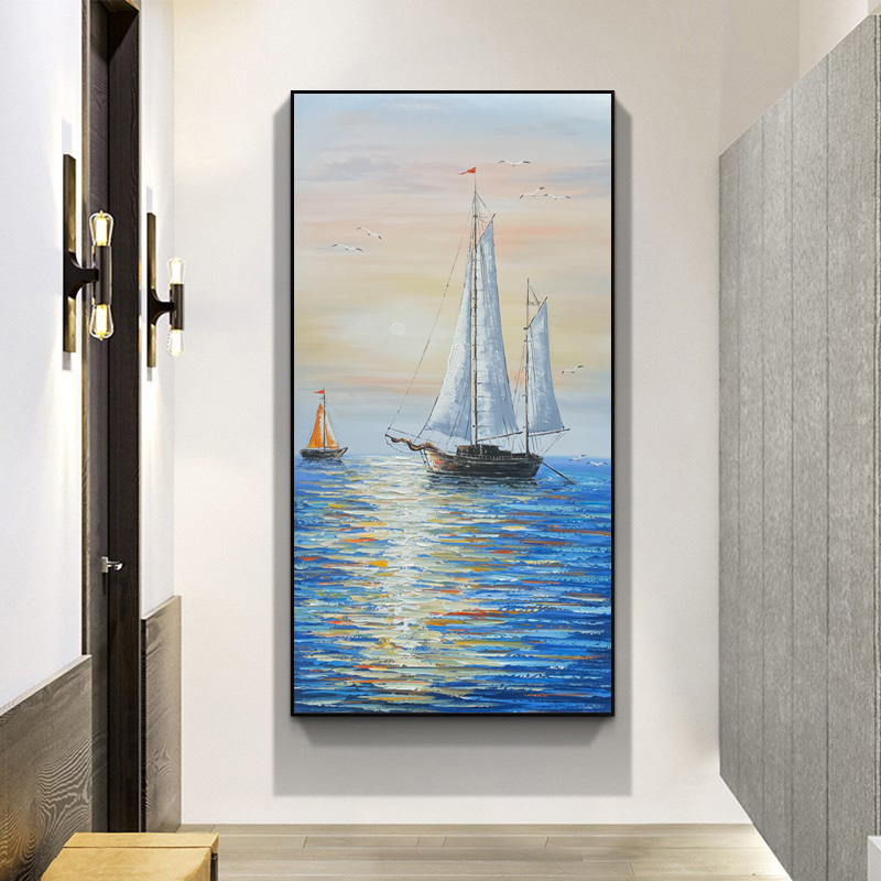 Simple modern entrance porch decorative painting three-dimensional hanging painting Nordic wind corridor aisle mural abstract oil painting sailboat