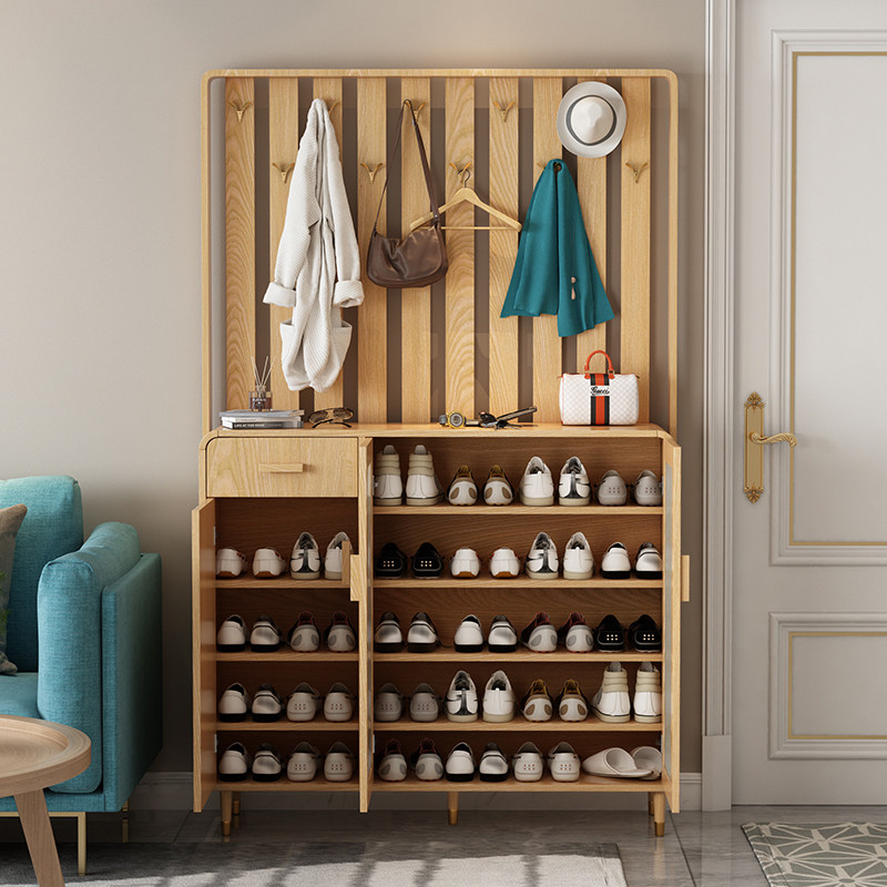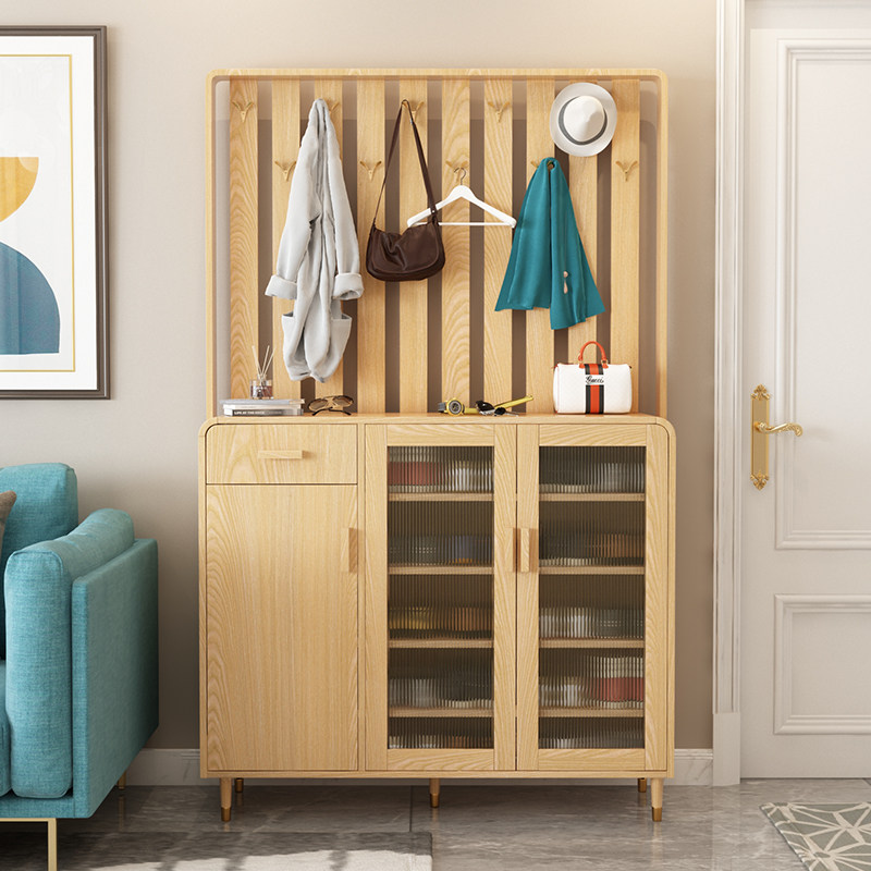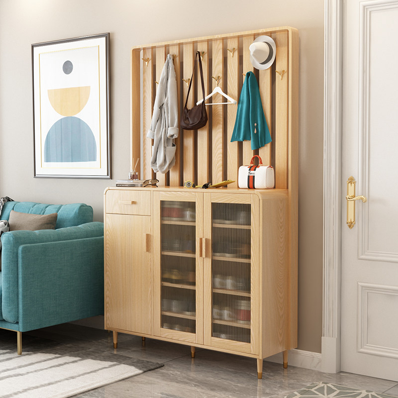 Nordic porch partition shoe cabinet solid wood legs into the home door with hangers simple modern storage cloak cabinet