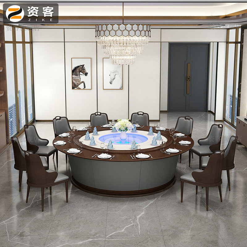Funker Electric Dining Table Hotel Big Round Table Automatic Swivel Turntable Solid Wood Hotpot Table Hotel 10 15 20 People Table