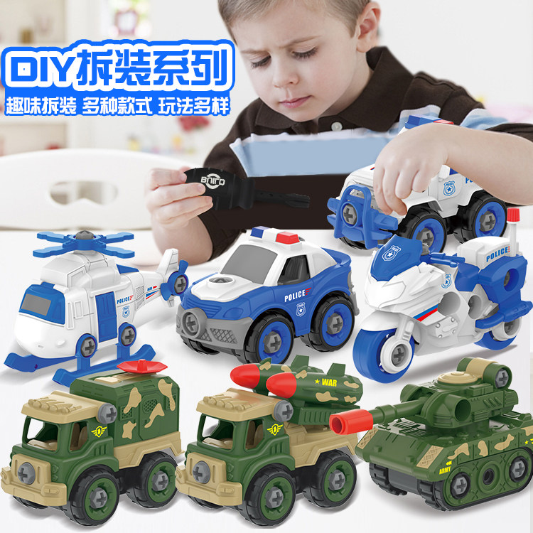 Children's disassembly engineering vehicle toy gliding police fire animal sanitation military removable screw excavator