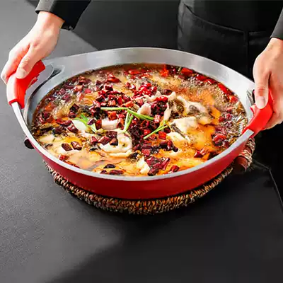 Creative boiled fish red aluminum alloy double ear pot Sauerkraut Fish Sichuan cuisine special artistic conception vegetable tableware can be heated without touching