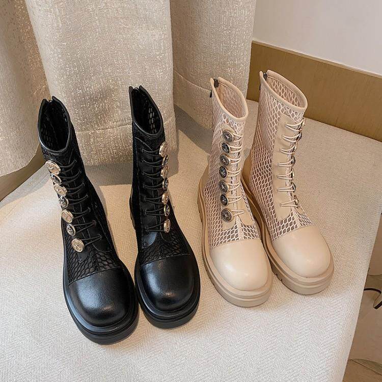 Martin boots summer thin female breathable leather mesh boots thick soles hollowed new red cool boots British wind