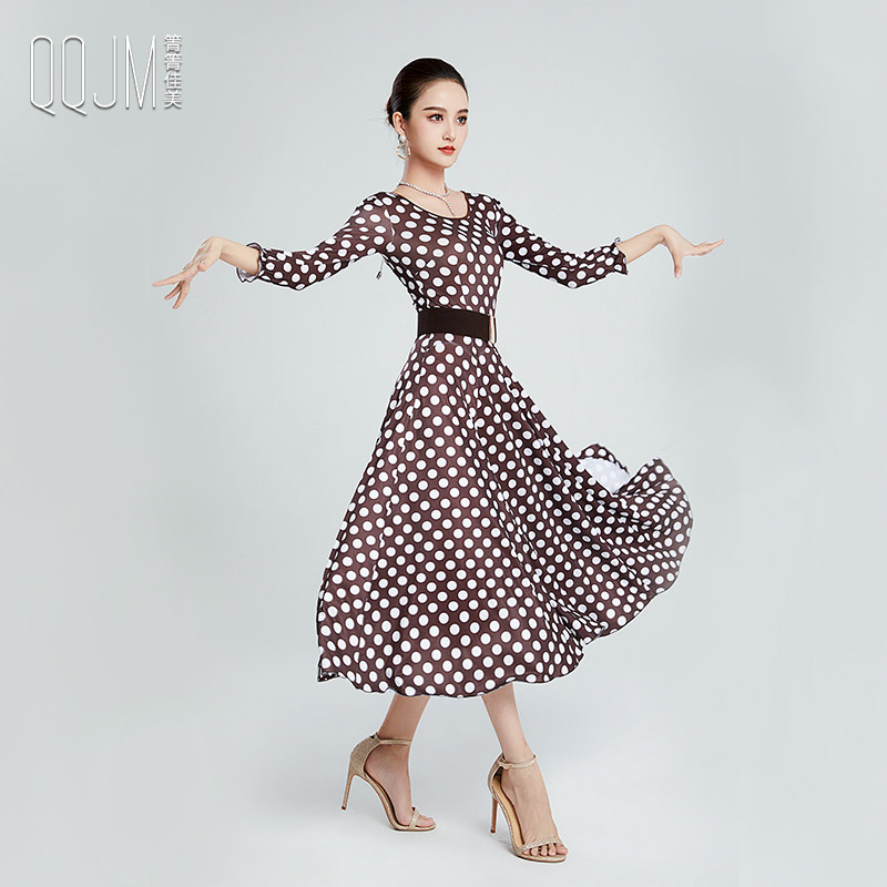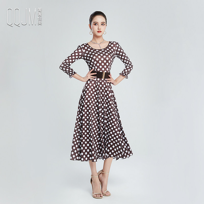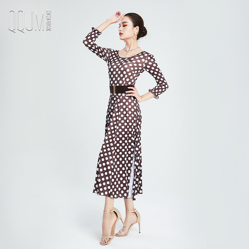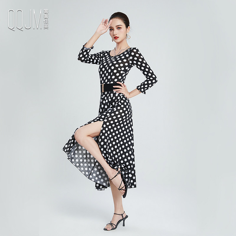 Qingqing Jiamei modern dance clothes new wave point dress ballroom dance self-cultivation fashion slit waist slimming dance skirt