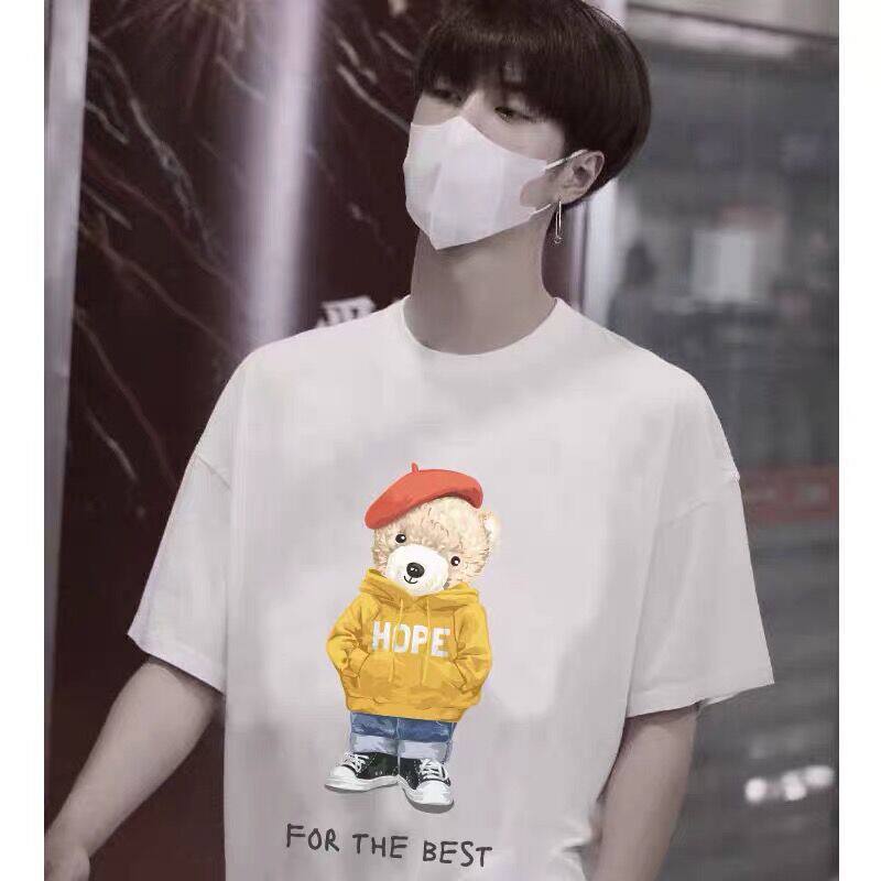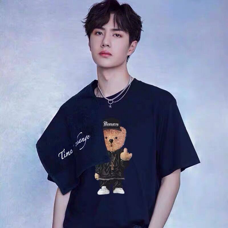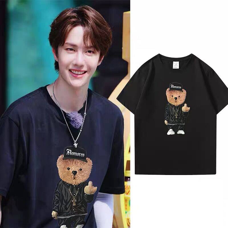 Kurashi Yishu co-branded Wang Yibo bear pure cotton loose short-sleeved t-shirt men's summer star with the same isn couple outfit