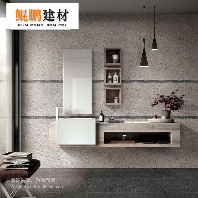 Antique minimalist modern grey small grain water grindstone tile 600x600 Living room Dining Room Dining Room Dining Room Kitchen