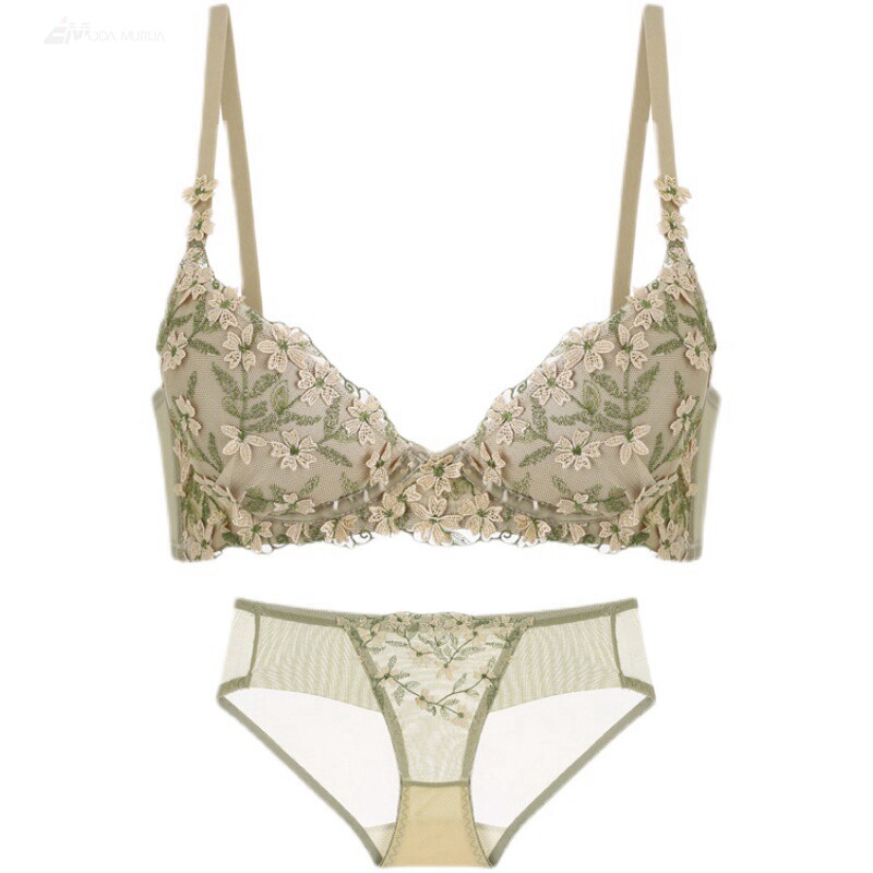 Sexy lingerie women's pure desire thin section small chest gather no steel ring embroidery lace cup sexy hot bra set
