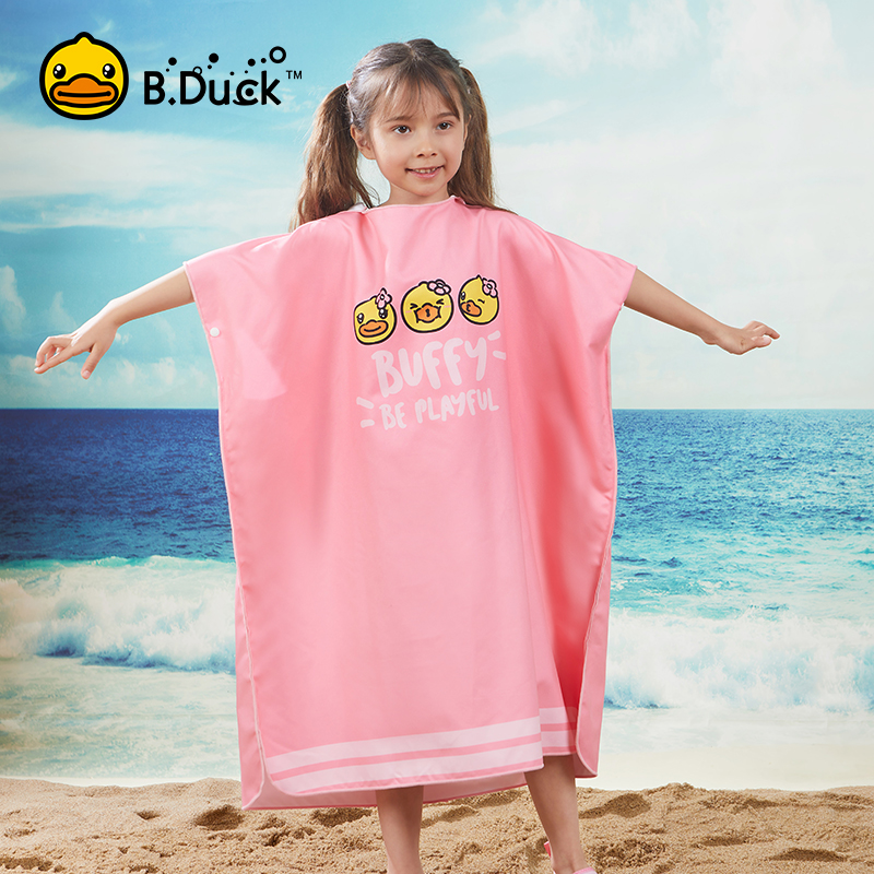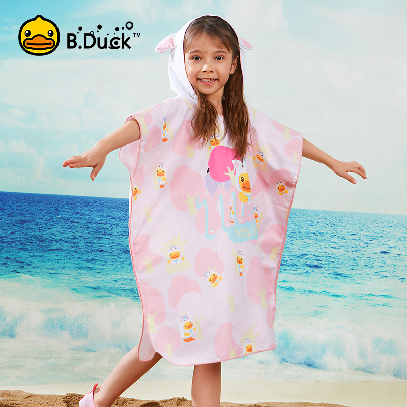 B Duck little yellow Duck children quick dry bathrobe girl bath towel cloak hooded swimming hot spring beach absorbent towel
