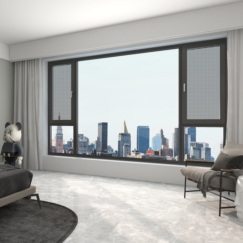 Broken bridge aluminum alloy system door and window sealing balcony flat open floor soundproof glass anti-theft window yarn integrated window customization