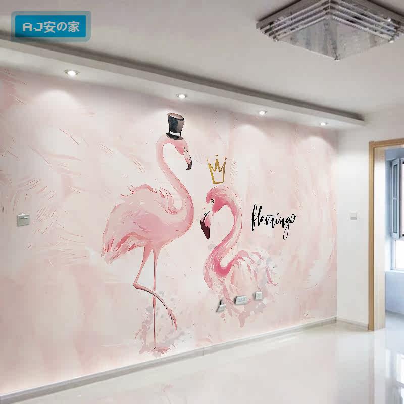 Direct Sowing Room Background Wall Wallpaper Nordic Pink Flarebird Wallpaper Ins Nets Red Photoshoot Card Beauty Shop Mural Painting
