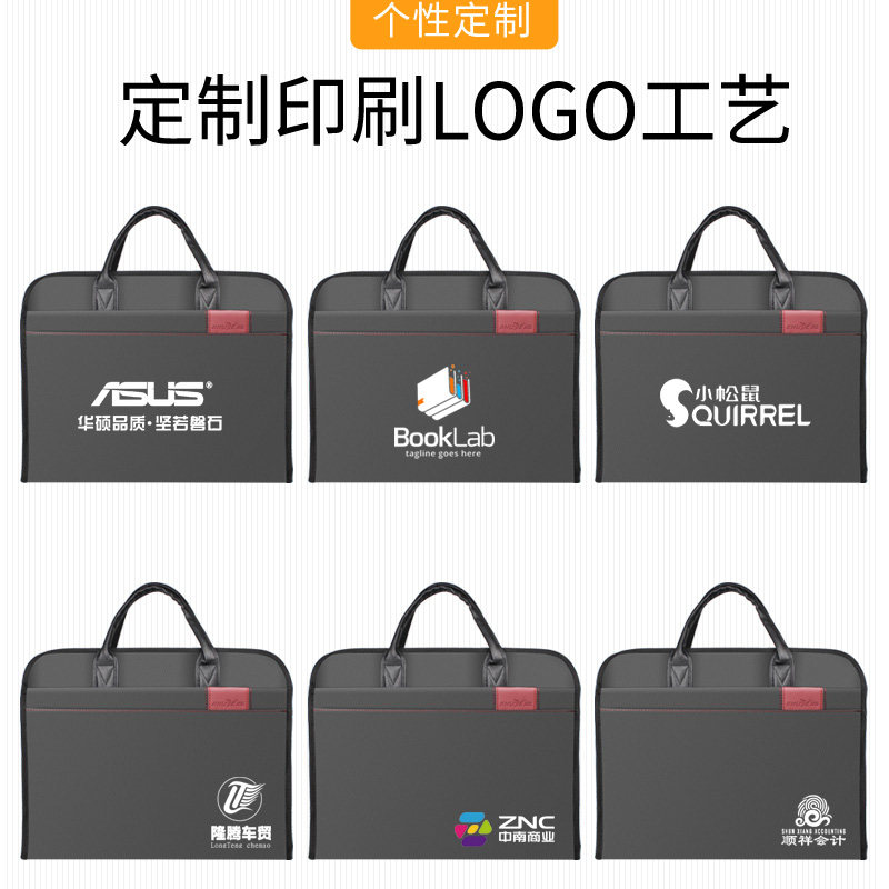Oxford canvas file bag portable business casual men's double-layer storage file bag large-capacity zipper conference bag office thickened information bag briefcase business trip bag custom text logo