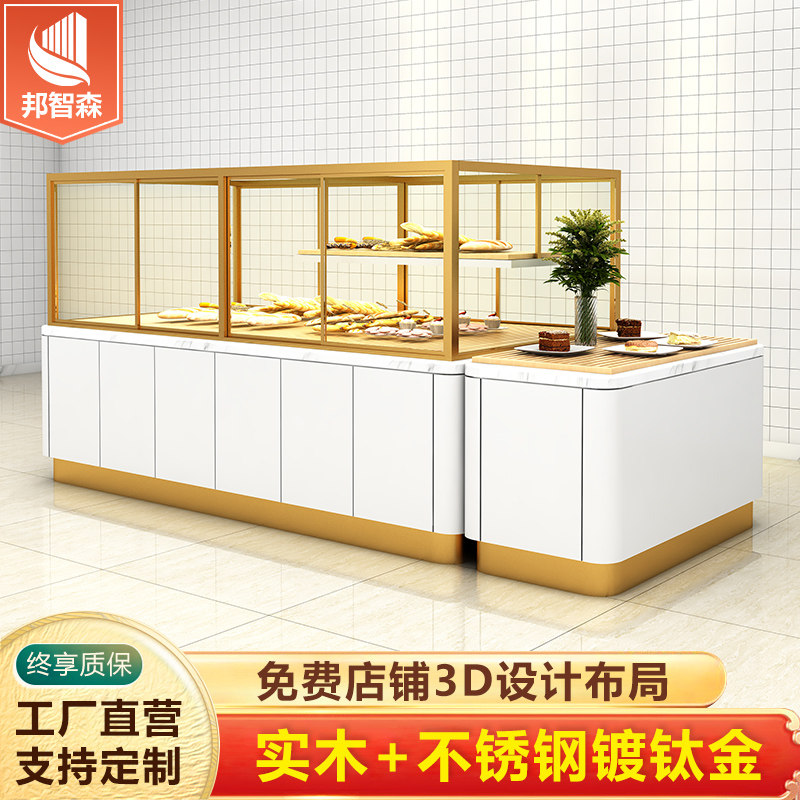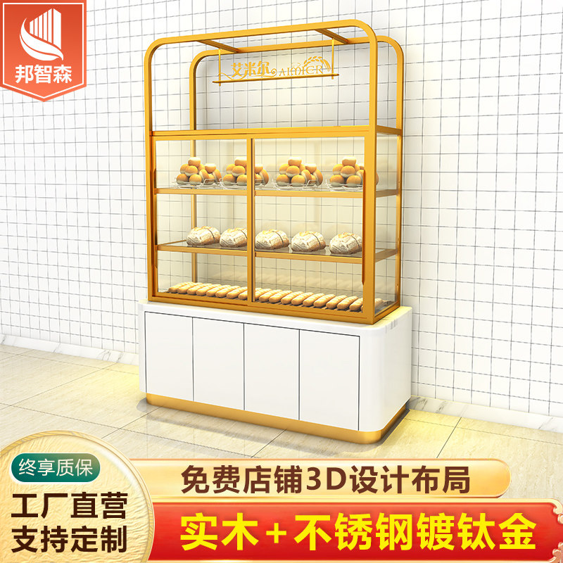 Bread Show Cabinet Middle Island Side Cabinet Egg Pastry Model Cabinet Arched Glass Stainless Steel Plated Titanium Pastry Display Cabinet Table