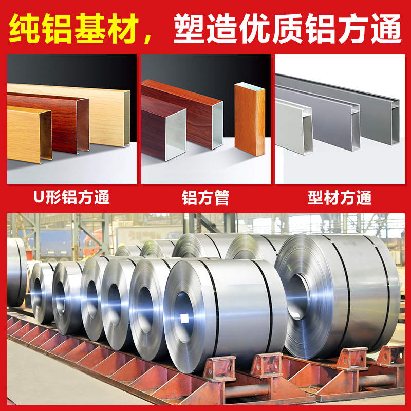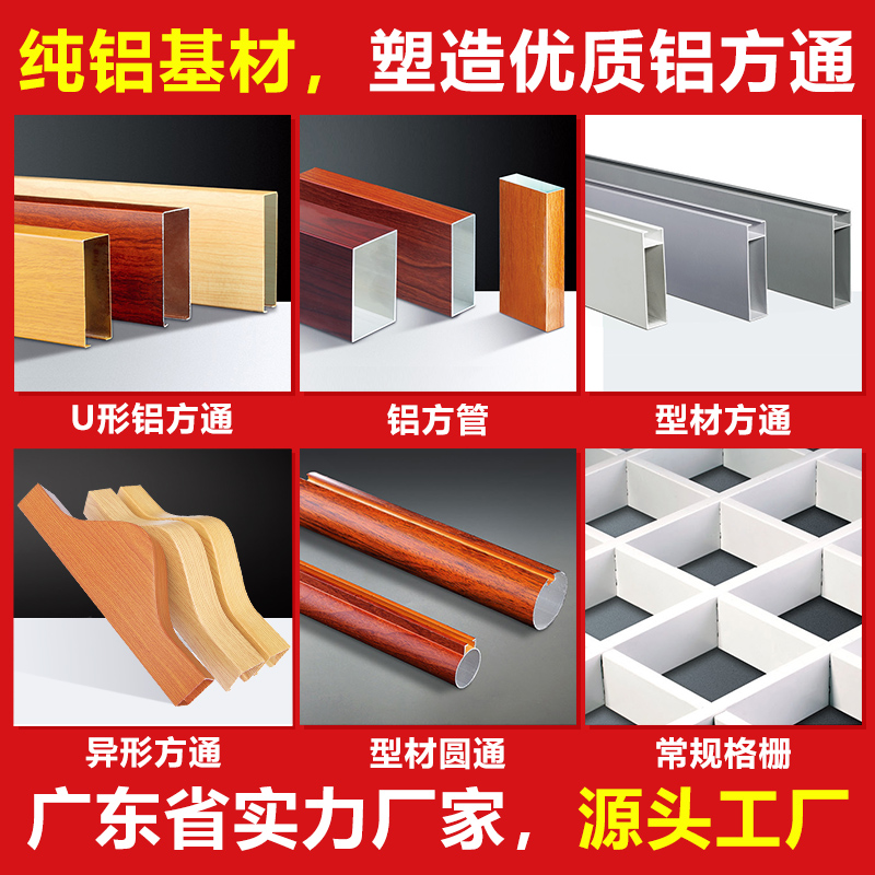 Factory direct white wood grain U type aluminium square through suspended ceiling arched square-through partition profile aluminium grille aluminium alloy tube
