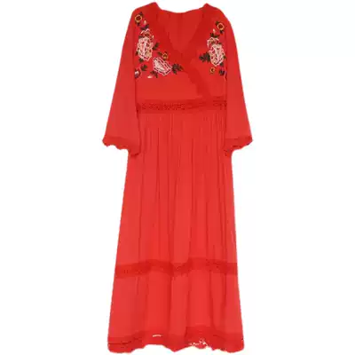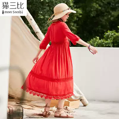Parent-child dress summer beach dress Prairie desert seaside resort girl dress child skirt mother dress long dress red