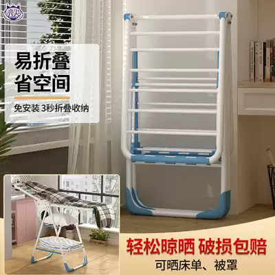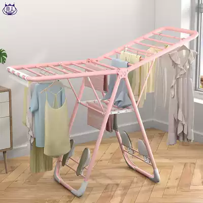 Drying rack floor-to-ceiling folding indoor simple cool hanger Rod small sun-drying baby clothes shelf balcony clothes clothes artifact