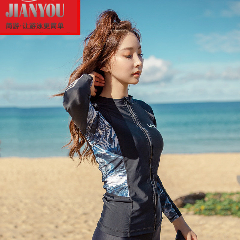 2021 new Korean diving suit printed long sleeve swimsuit woman two-piece surf speed dry snorkeling jellyfish