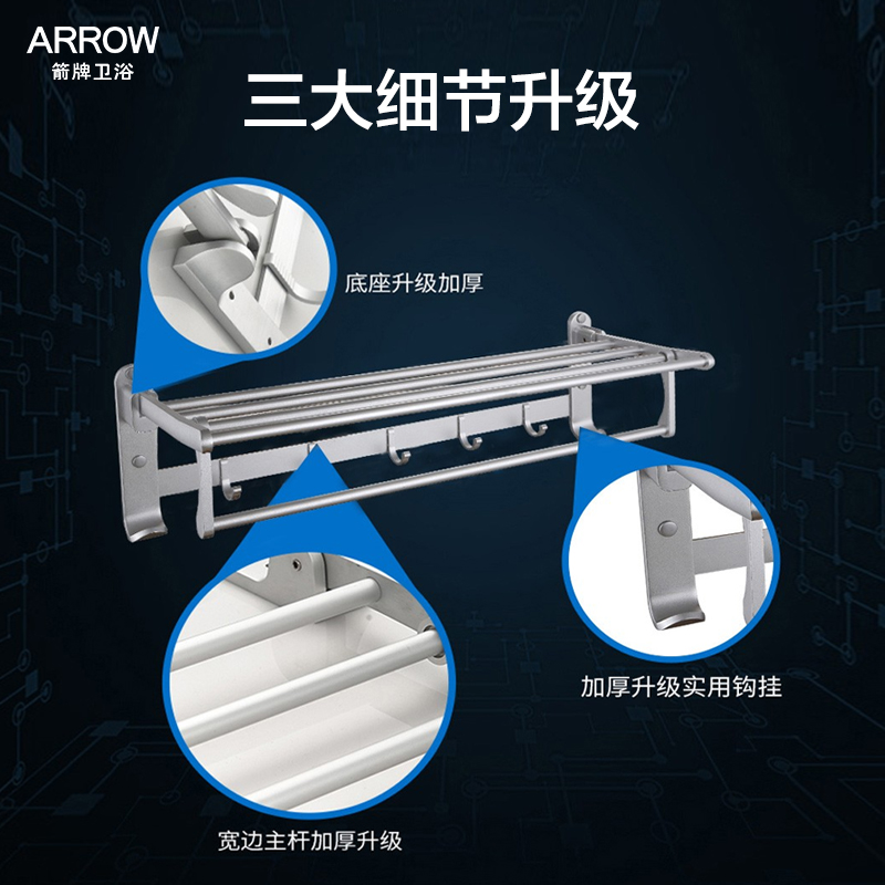 Arrow bathroom makeup room hardware hanging suit toilet towel frame toilet towel rack without punching black