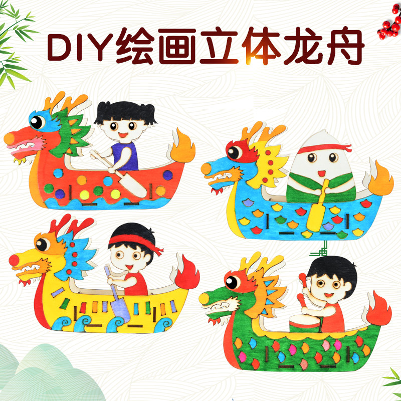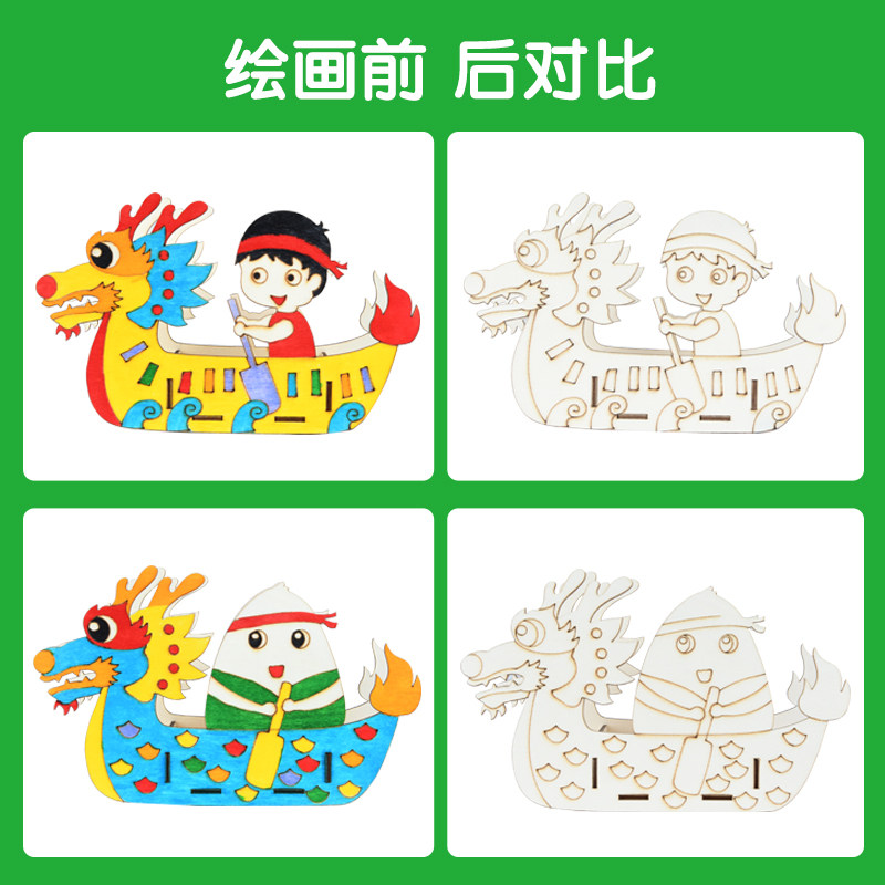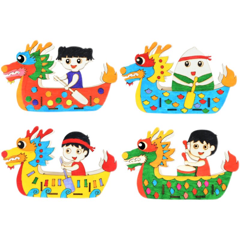 Wooden Painting Dragon Boat-Girl Wooden Painting Dragon Boat-Boy Wooden Painting Dragon Boat-Drummer Wooden Painting Dragon Boat-glutinous rice dumplings A set of 4 models not repeated to buy here 20 more is 3 2