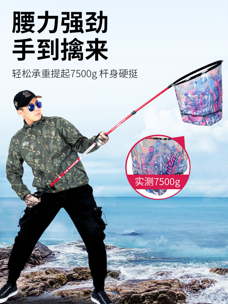 Rod Head Folding Mesh Fish Large Number Woven Fish Pocket Connecting Head Handle Small Number Table Fishing Crucian Fishing Netting Tool Lengthened