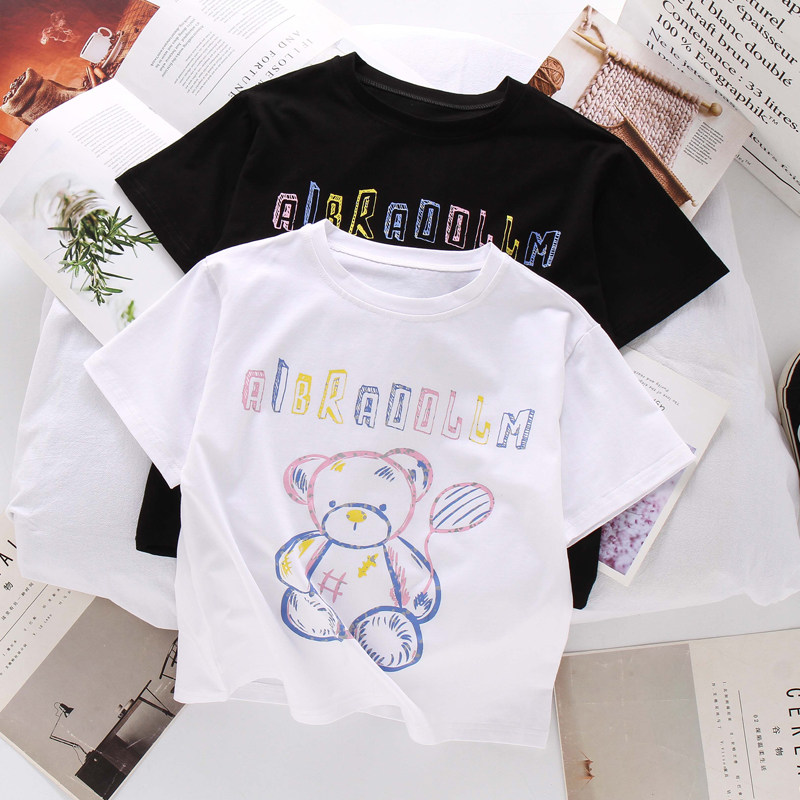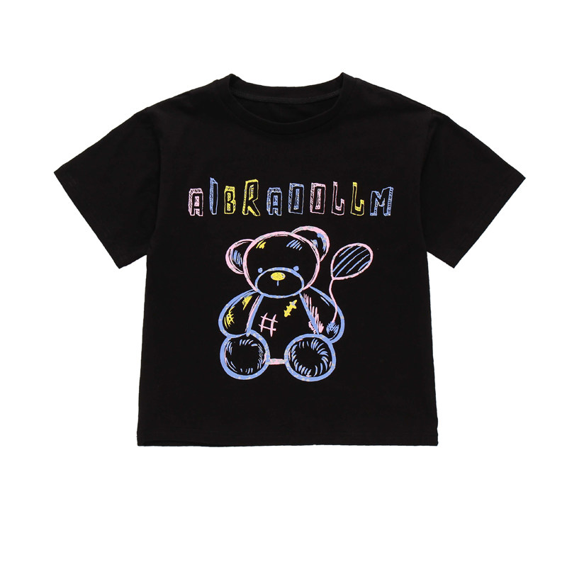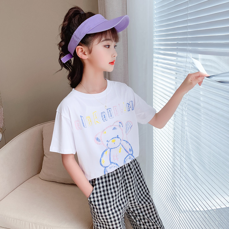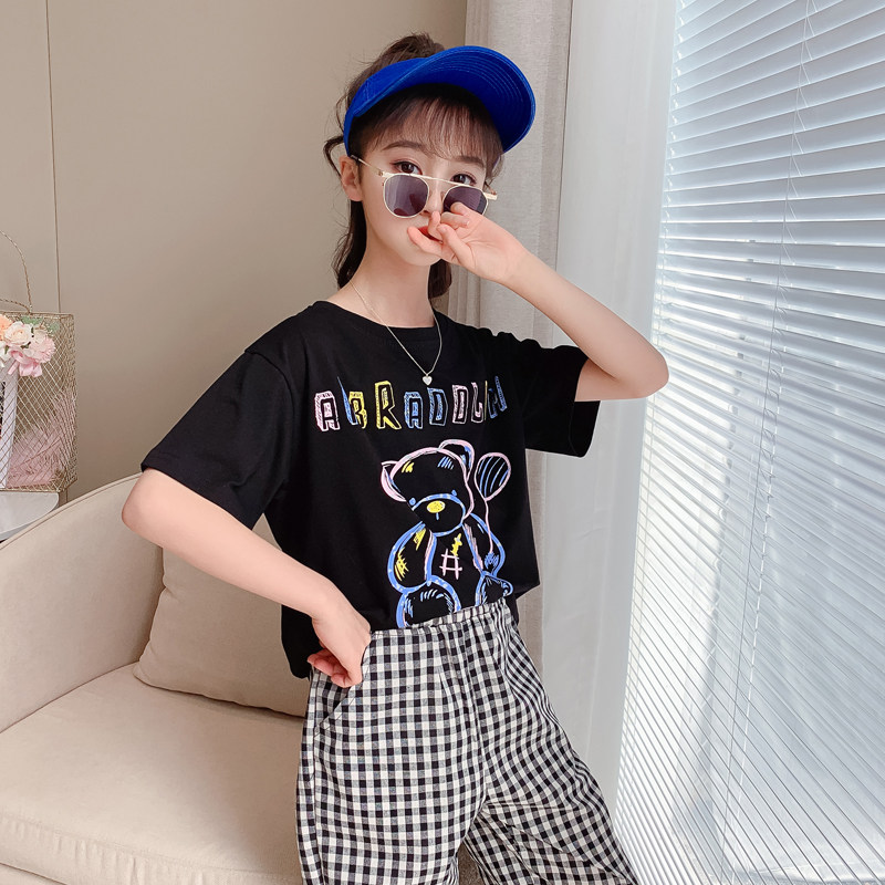 Girl Short Sleeve T-shirt 2022 Summer Dress New Children Suit Foreign Pie Loose Cartoon blouses CUHK Tong Leisure t