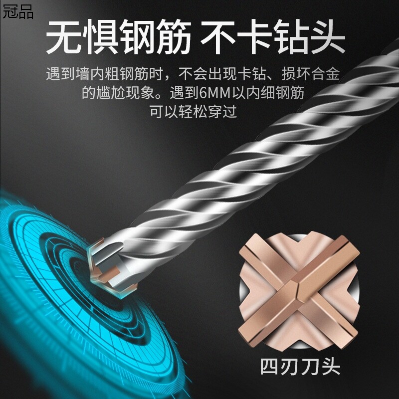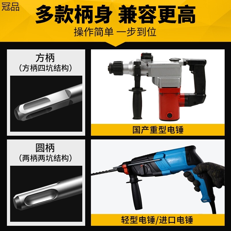 Impact drill Cross electric hammer drill with round shank square shank drilled concrete wearing wall lengthened electric hammer over wall turning head four pit drill