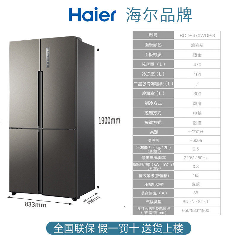 Haier 217 470 480 651 liters dual frequency intelligent air-cooled frost-free door first-class household refrigerator