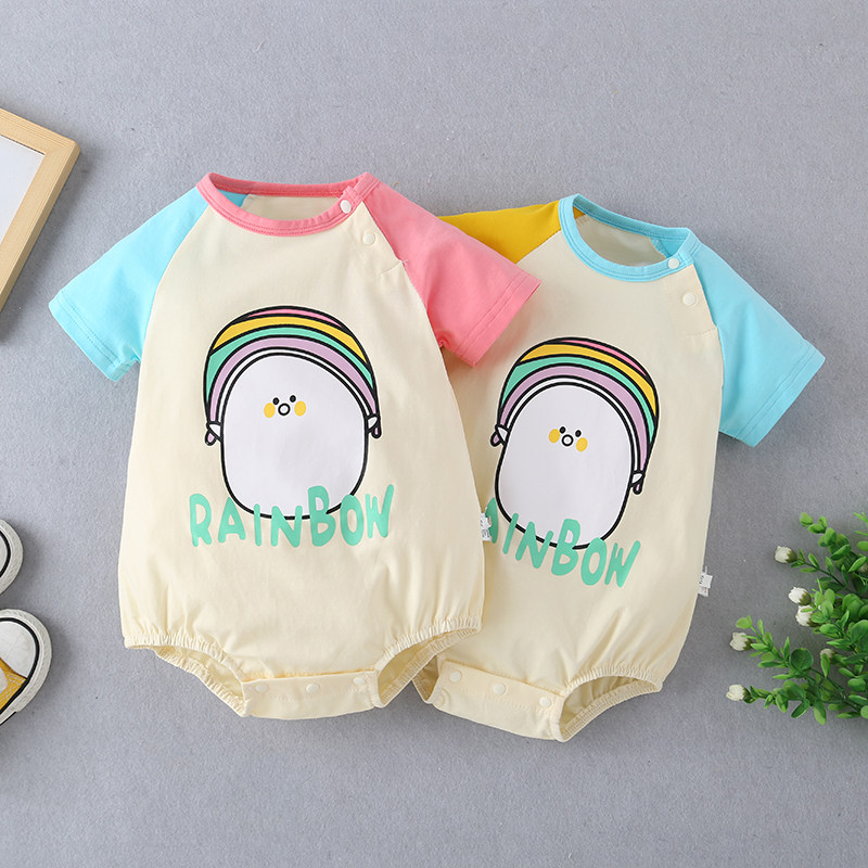 Baby jumpsuit summer newborn short-sleeved ha dress summer baby girl super cute triangle bag ass clothes crawling clothes thin