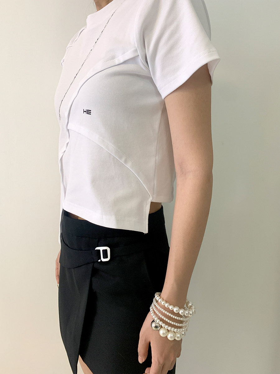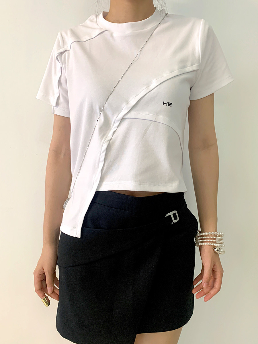 Spring and summer new irregular white short-sleeved commuter T-shirt summer BM hot girl breathable personality ins wind top spot