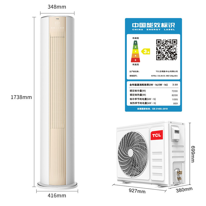 TCL large 3 p vertical air conditioning Cabinet new energy efficiency frequency conversion living room home heating floor cabinet official ME12